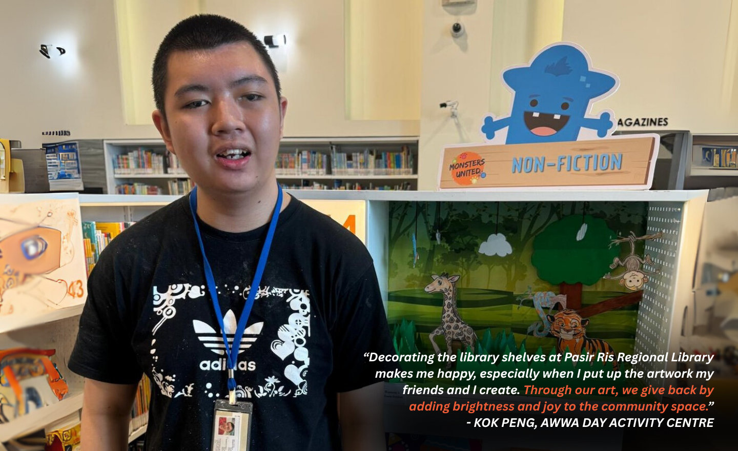 - Adults with disabilities partnered with Pasir Ris Library to decorate and engage the community.